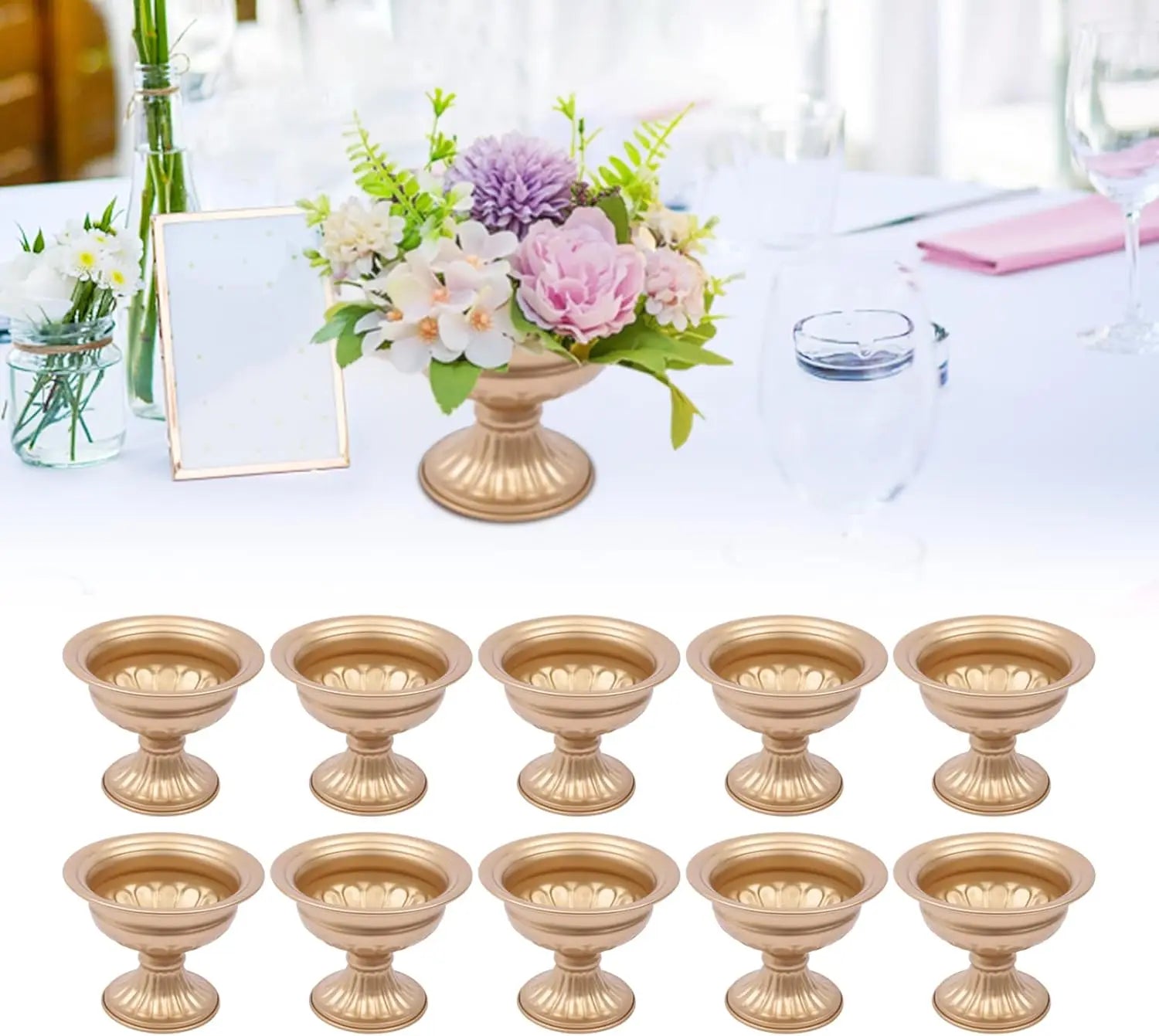 Elevate your event with the Hign-concerned Gold Flower Vases Set, turning simple blooms into a stunning wedding centerpiece.