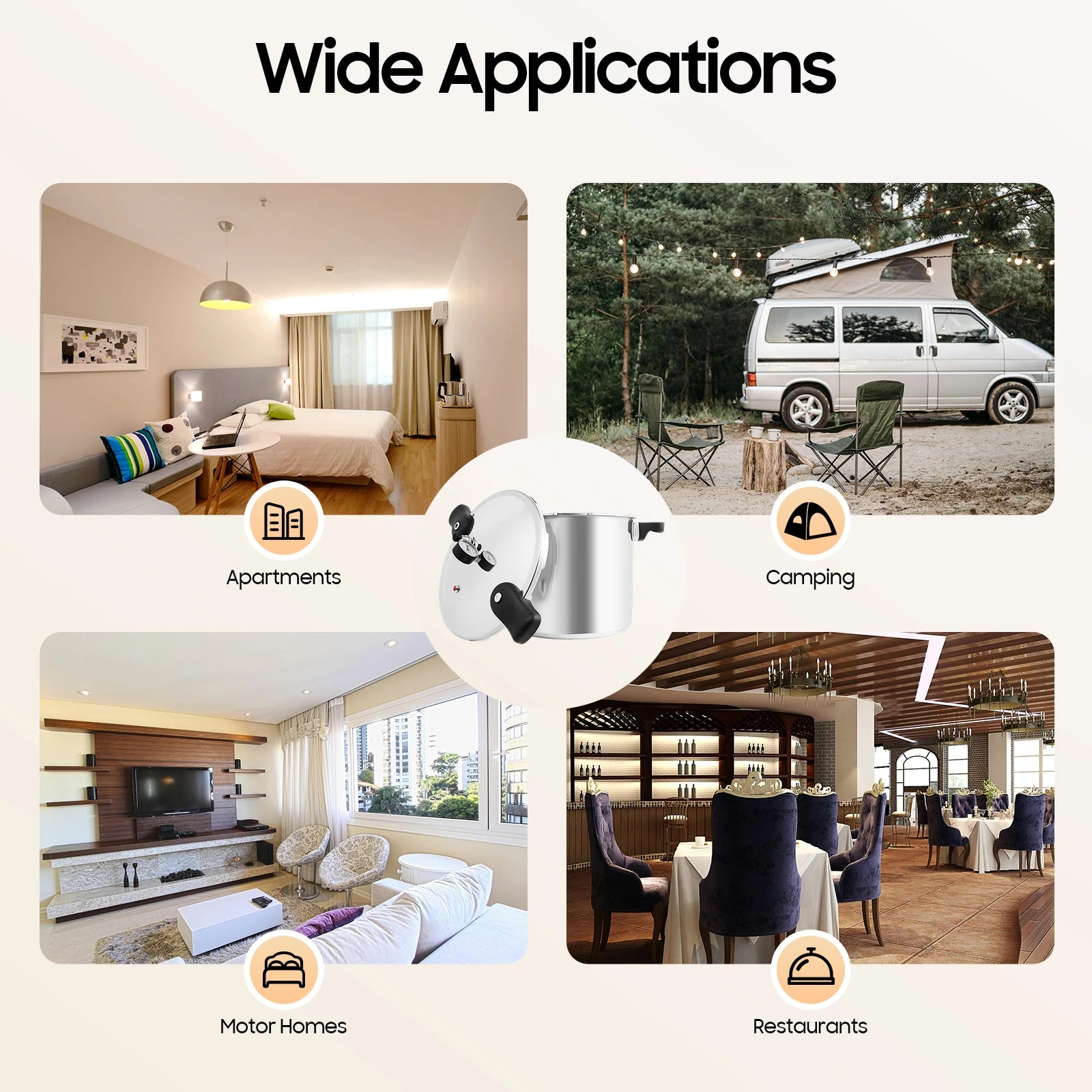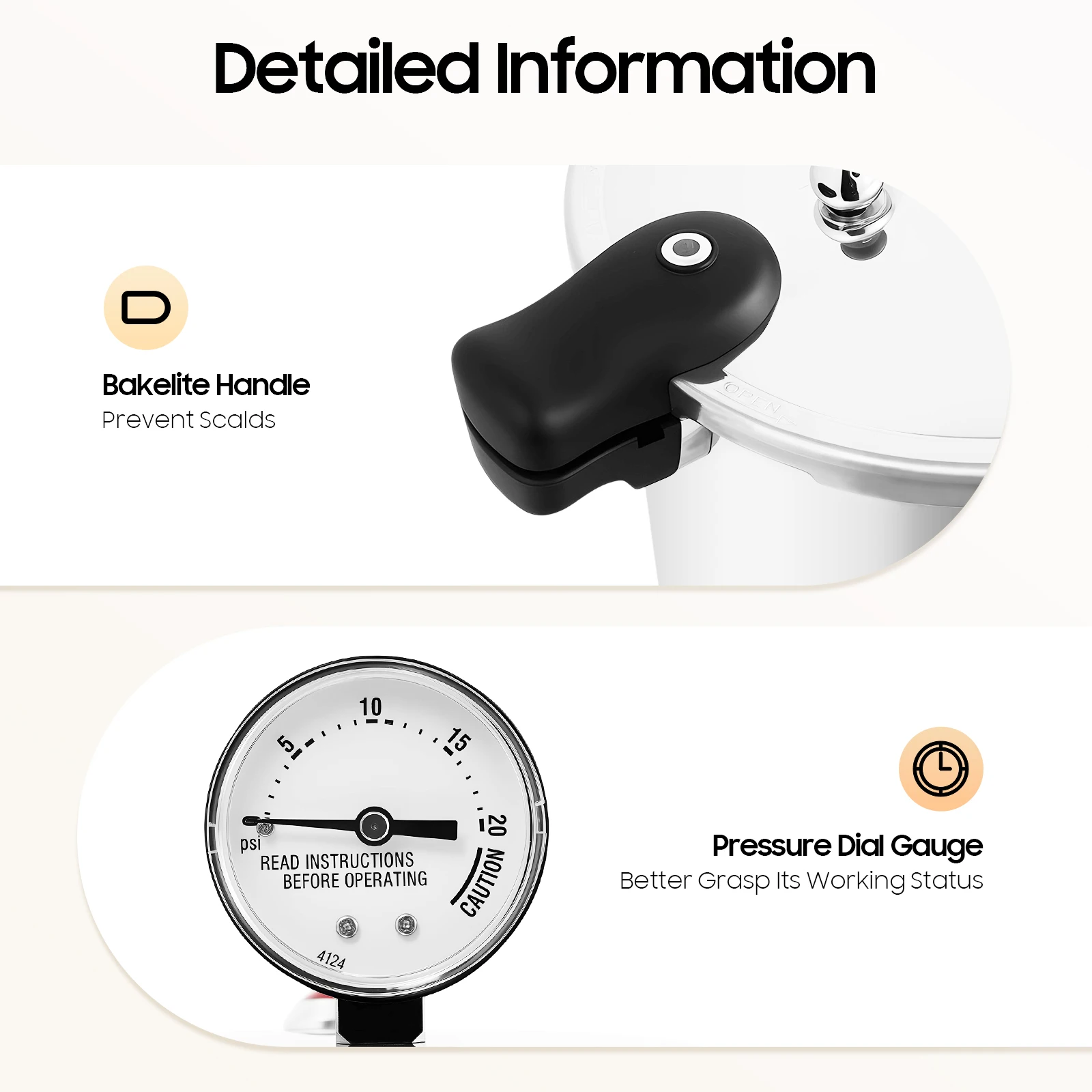 Cook faster, safer, and tastier meals with the Aluminium Alloy Pressure Cooker featuring a 0-90 KPa explosion-proof gauge.