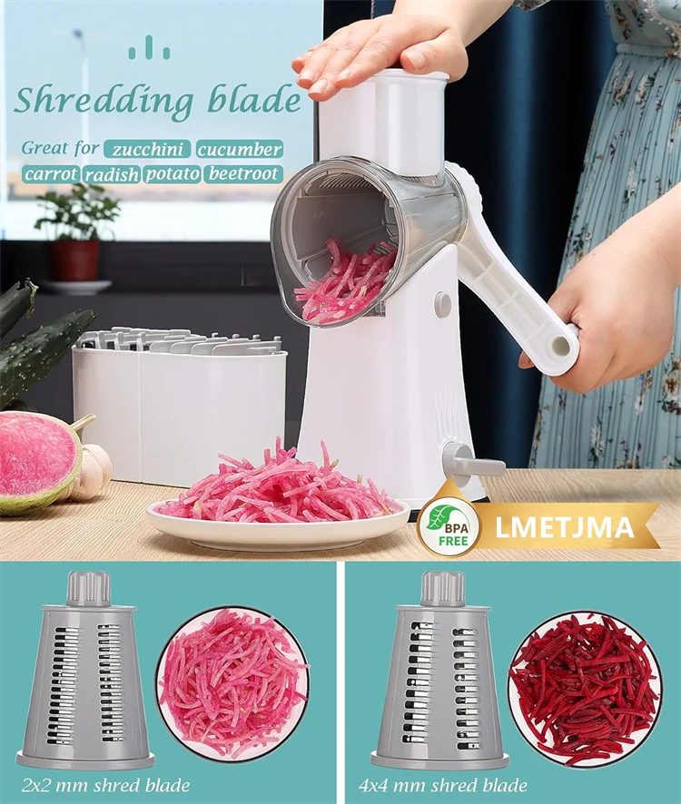 LMETJMA 5-In-1 Rotary Cheese Grater Shredder With Julienne Slicer
