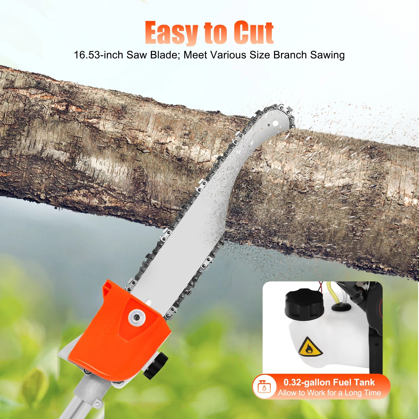 - Long-reach design with a 2.3 m (90.55 in) pole lets you prune tall limbs from the ground, avoiding ladders, reducing fatigue, and protecting you from overhead hazards.
