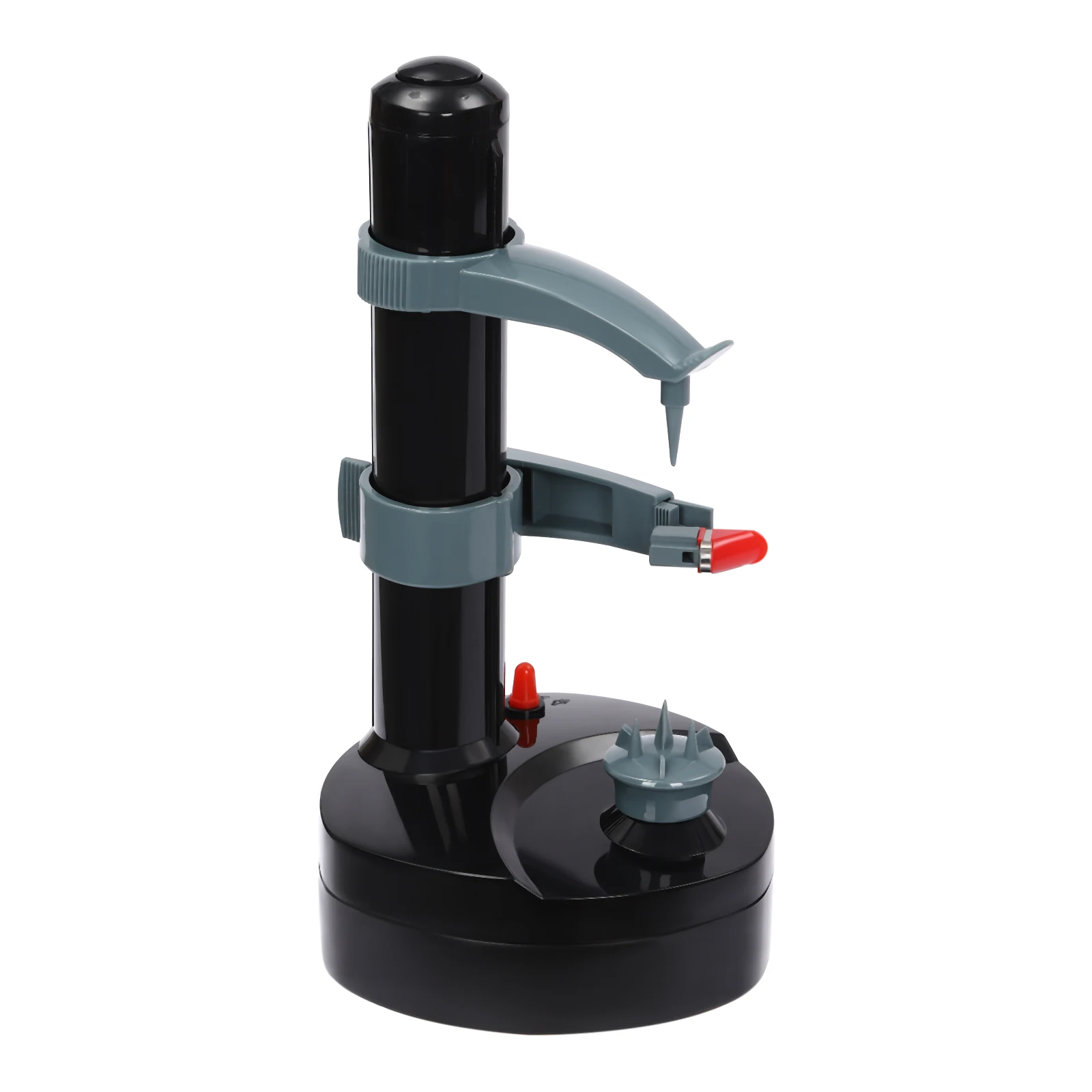 - Adjustable height and fixed needle keep your fruit steady on the top and bottom, while the bottom thumb knife helps you remove stubborn spots.
