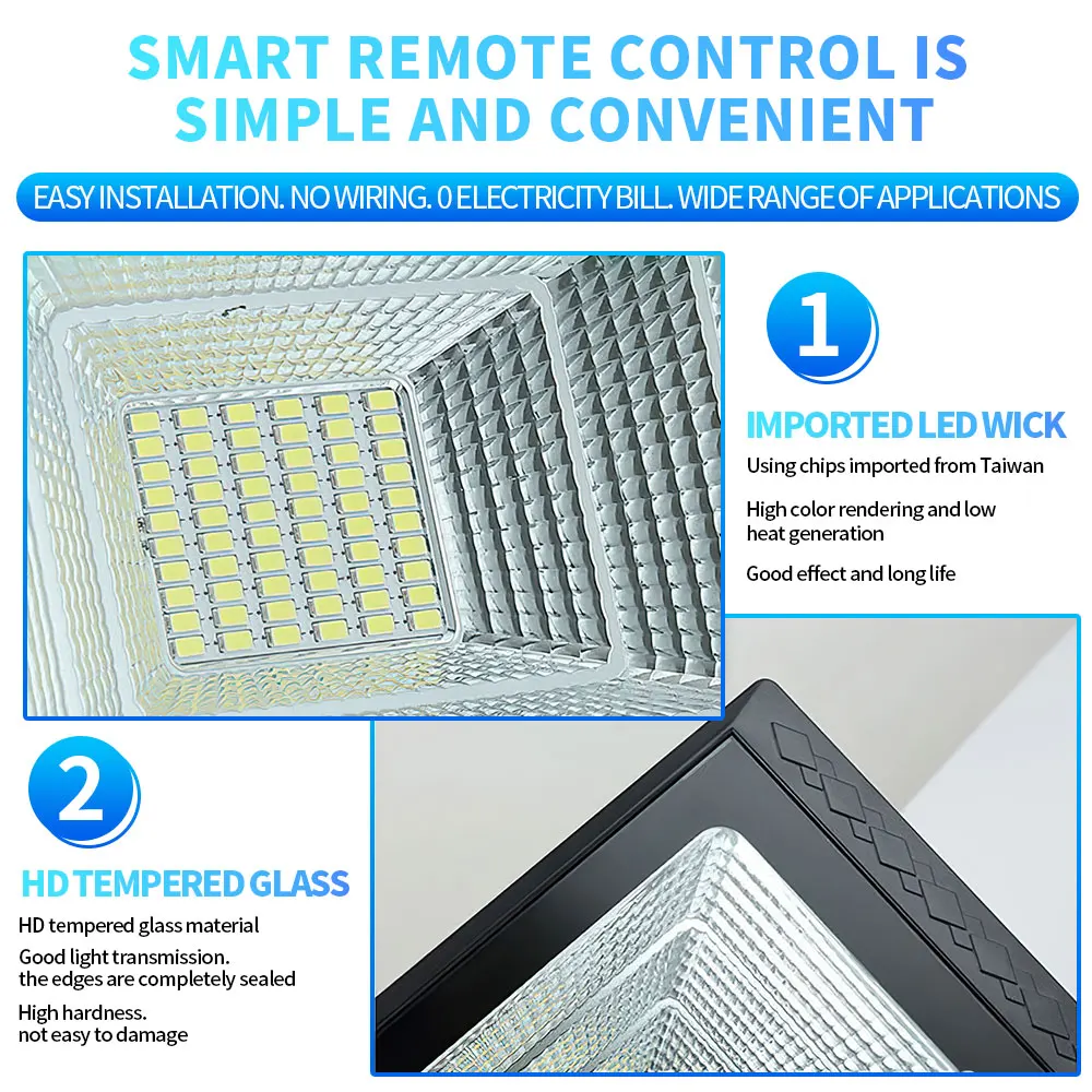 * Light control + remote control, use solar energy to charge efficiently during the day, automatically turn on the lights at night, no need to manually turn on the lights.