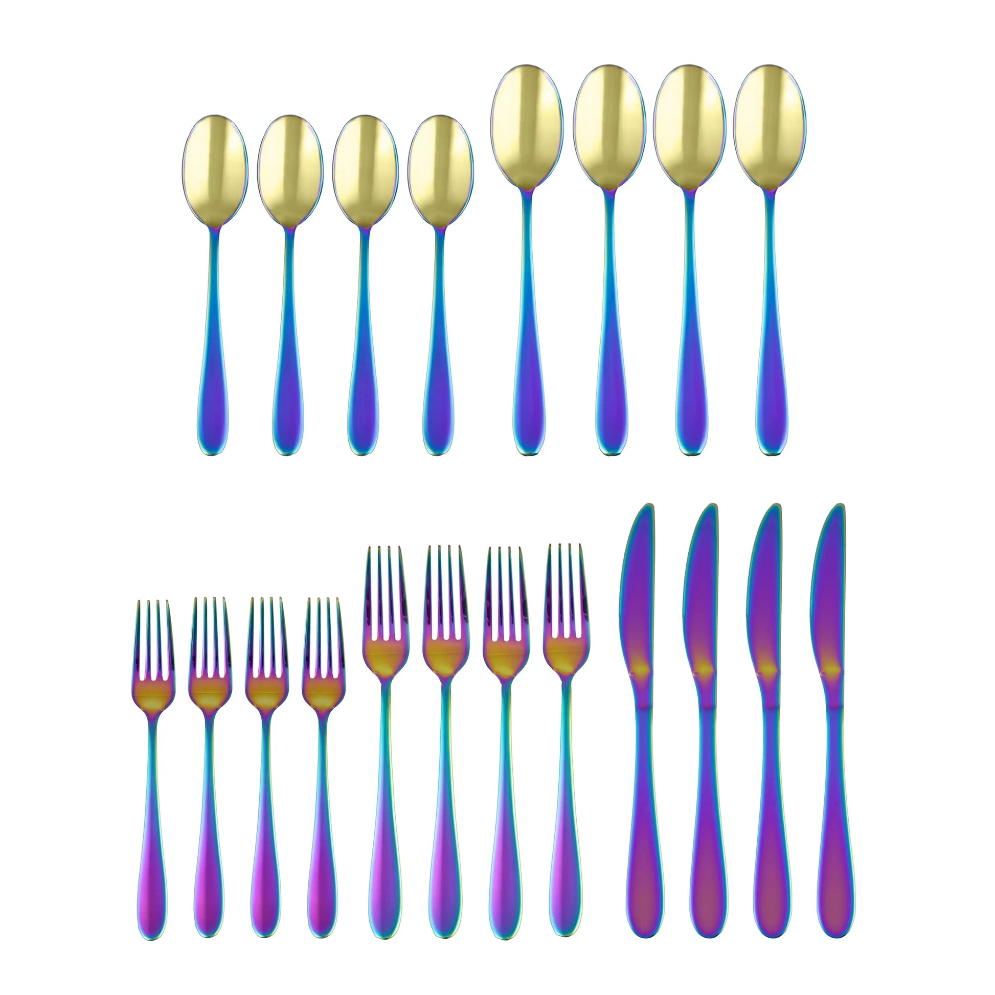 - Complete service for four, including 4 forks, 4 knives, 4 spoons, 4 teaspoons, and 4 salad forks, so you’re ready for intimate dinners, family meals, and stylish entertaining.