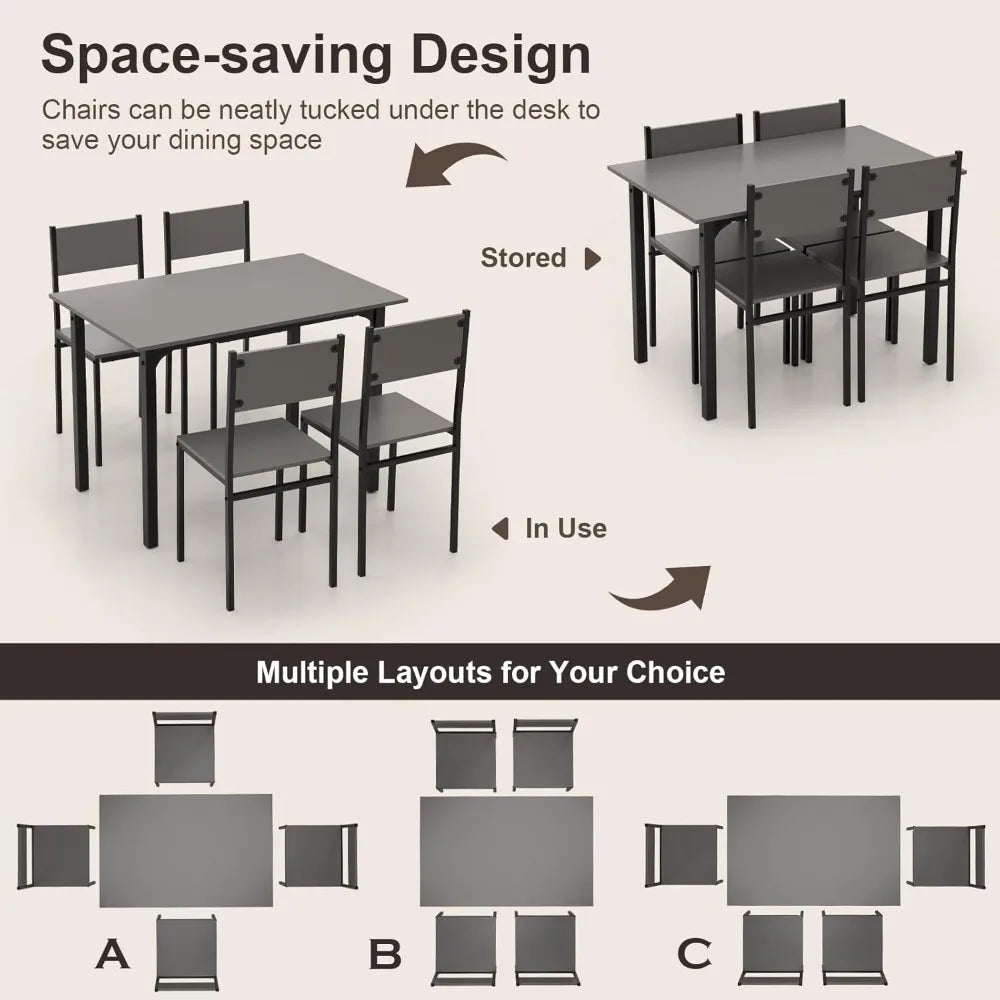 - You get a 5-piece set with a 43 x 27.5 x 30 inches table and four chairs, perfect for family meals, homework, or a compact work area.
