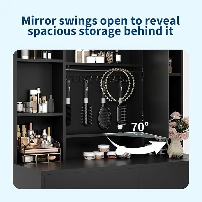 - Keeps your cosmetics, brushes, and daily essentials within easy reach, while the built-in mirror delivers a clear reflection for flawless results.